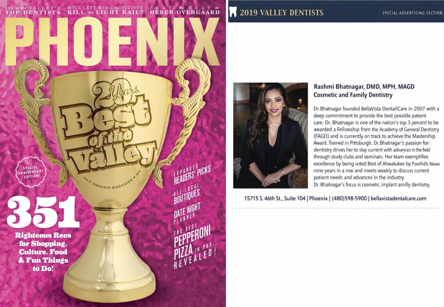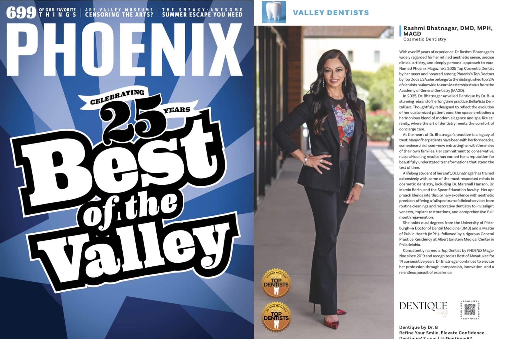 Newspaper Articles Dr. B featured as Top Dentist 2019 to 2024 by Phoenix Mag. What are Abscessed Teeth? With Ahwatukee Foothill News. Ahwatukee “Mompreneur” Spotlight for Dr. Bhatnagar by the Desert Moms